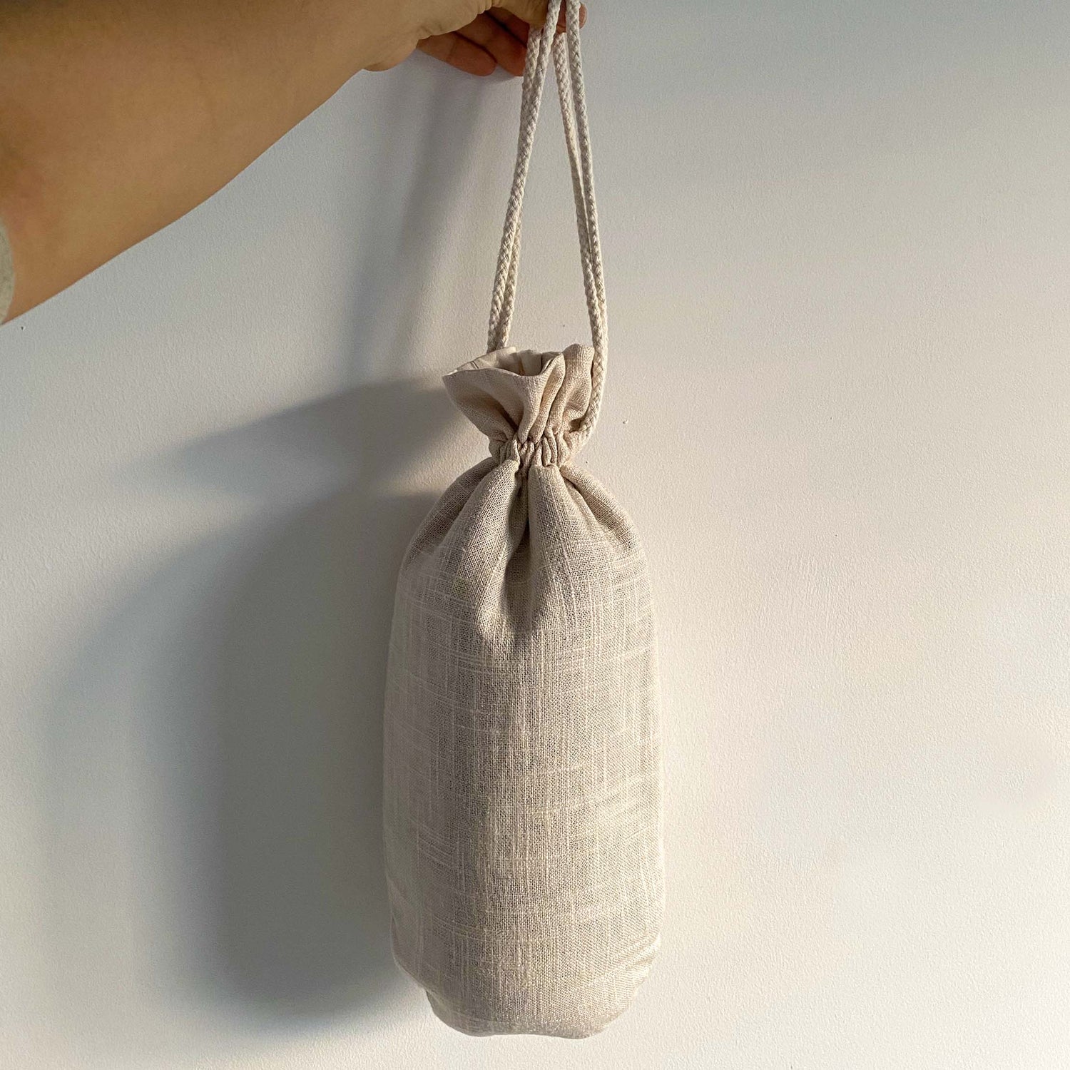 The Crystal Rattle Carrying Bag features a cotton and foam lining with a linen exterior, providing the necessary padding to protect the rattle from occasional impacts.