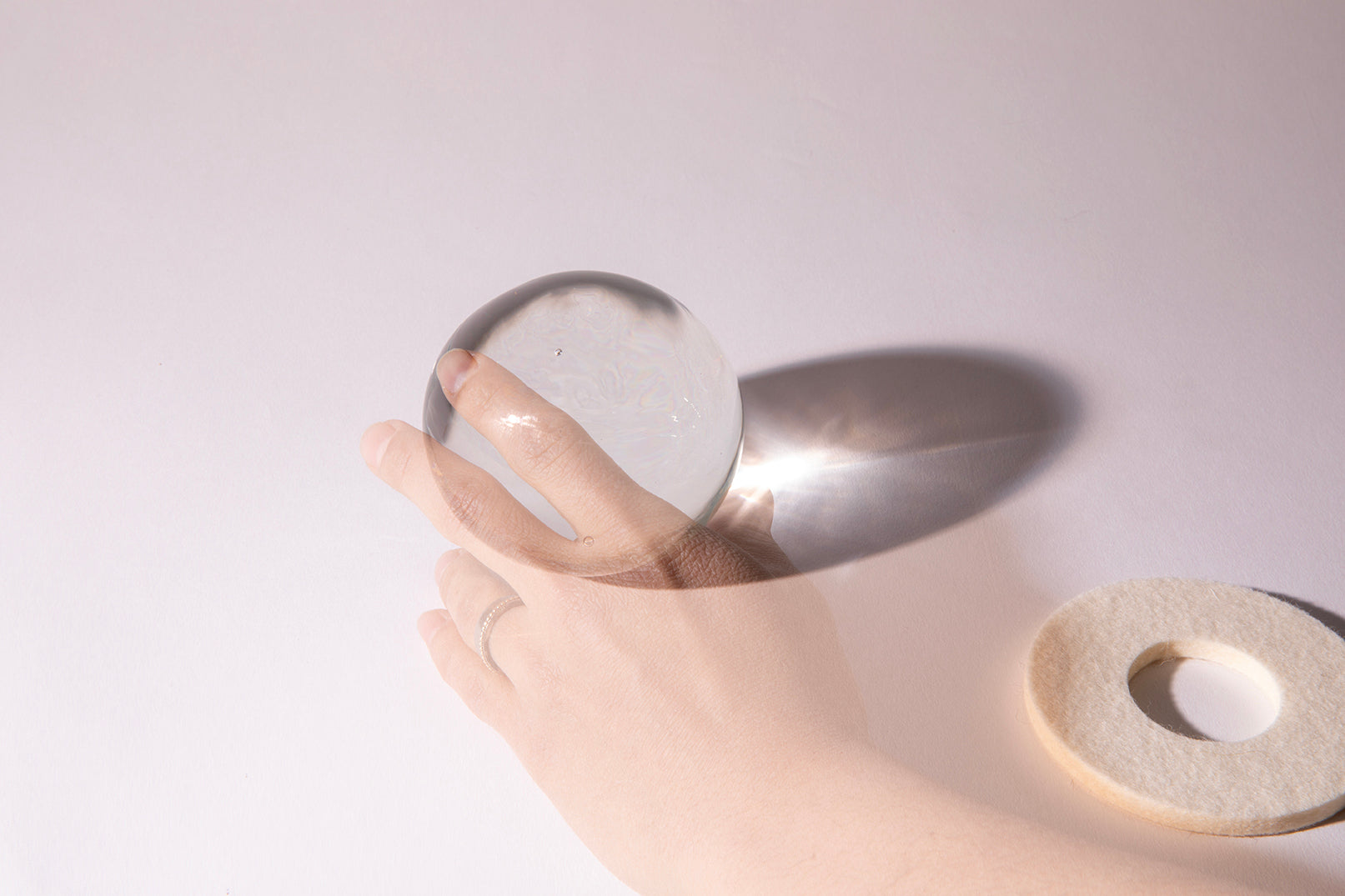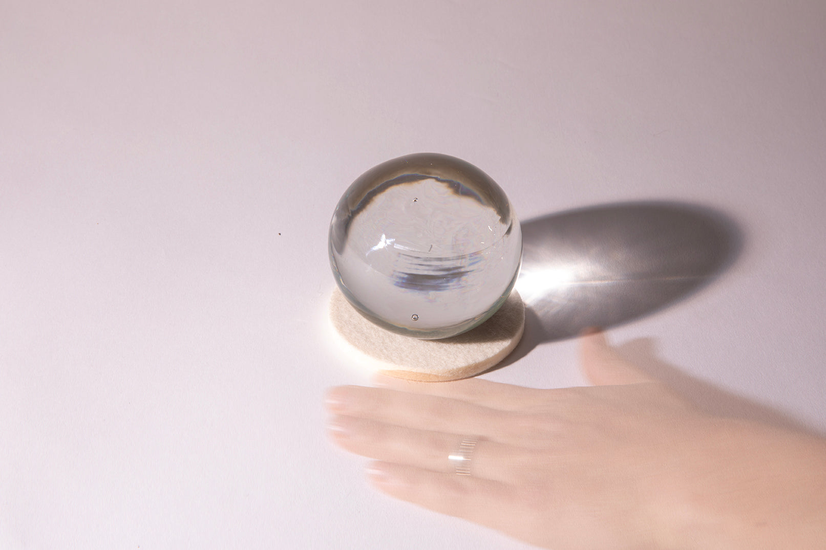 The acupressure sphere is great for rolling on your foot or up and down your spine or neck. It fits in the palm of your hand, allowing you to comfortably and evenly apply pressure to your area of choice. The Sphere comes with a wool felt ring for safe display when not in use. The felt ring can also be used to prevent the sphere from rolling when massaging the soles of your feet by applying pressure using the weight of your body. A minimal accent to an artful home as well as a useful manual massage tool.
