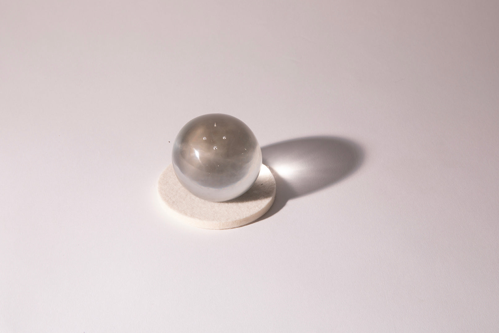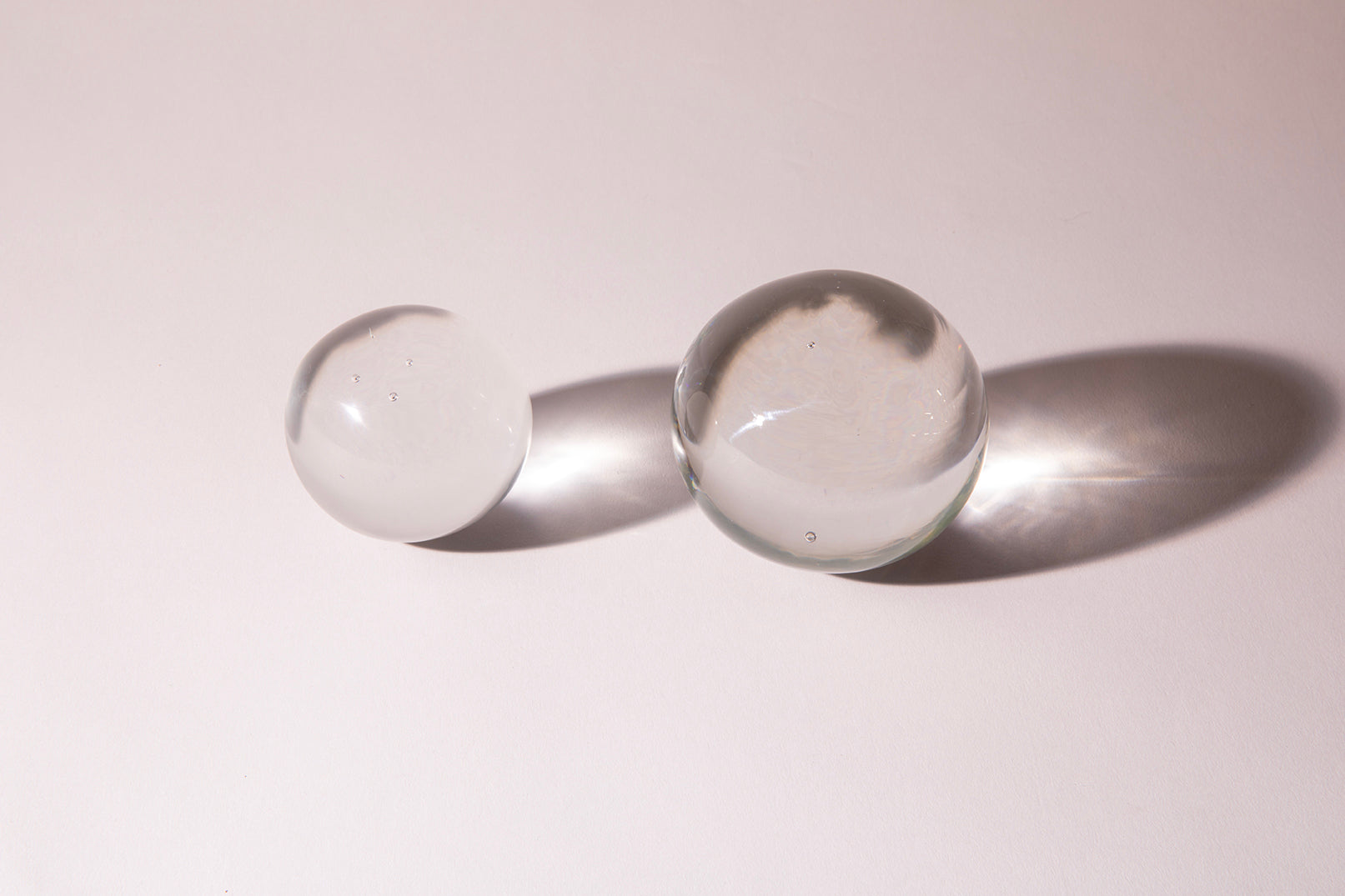 The small acupressure sphere comes in a satin surface finish and the large acupressure sphere in a polished surface finish.