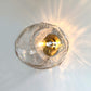 An extra large Formation turned into a flush mounted sconce light. Beams of light radiate through this organic and spontaneously shaped orb, and are cast onto the wall following the pattern and texture of the hand-made glass. They are reminiscent of how water, stone and ice formations occur in nature.