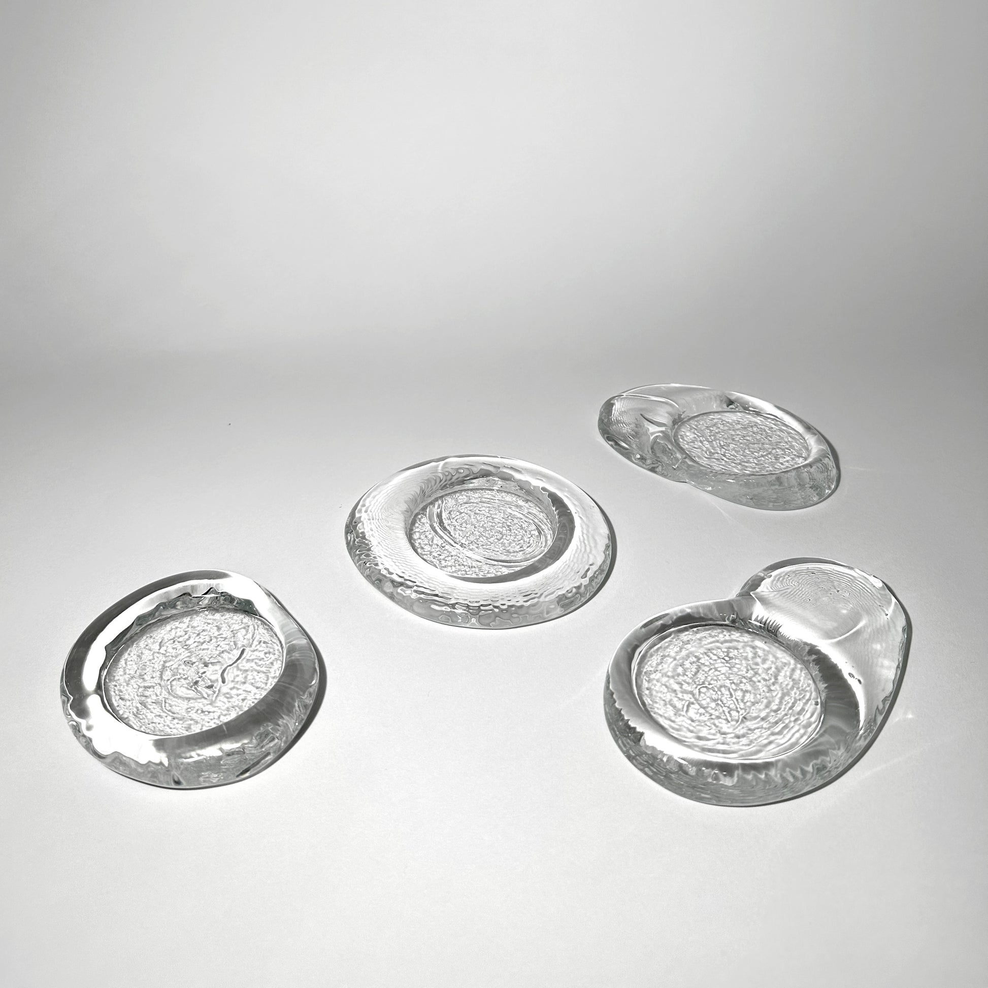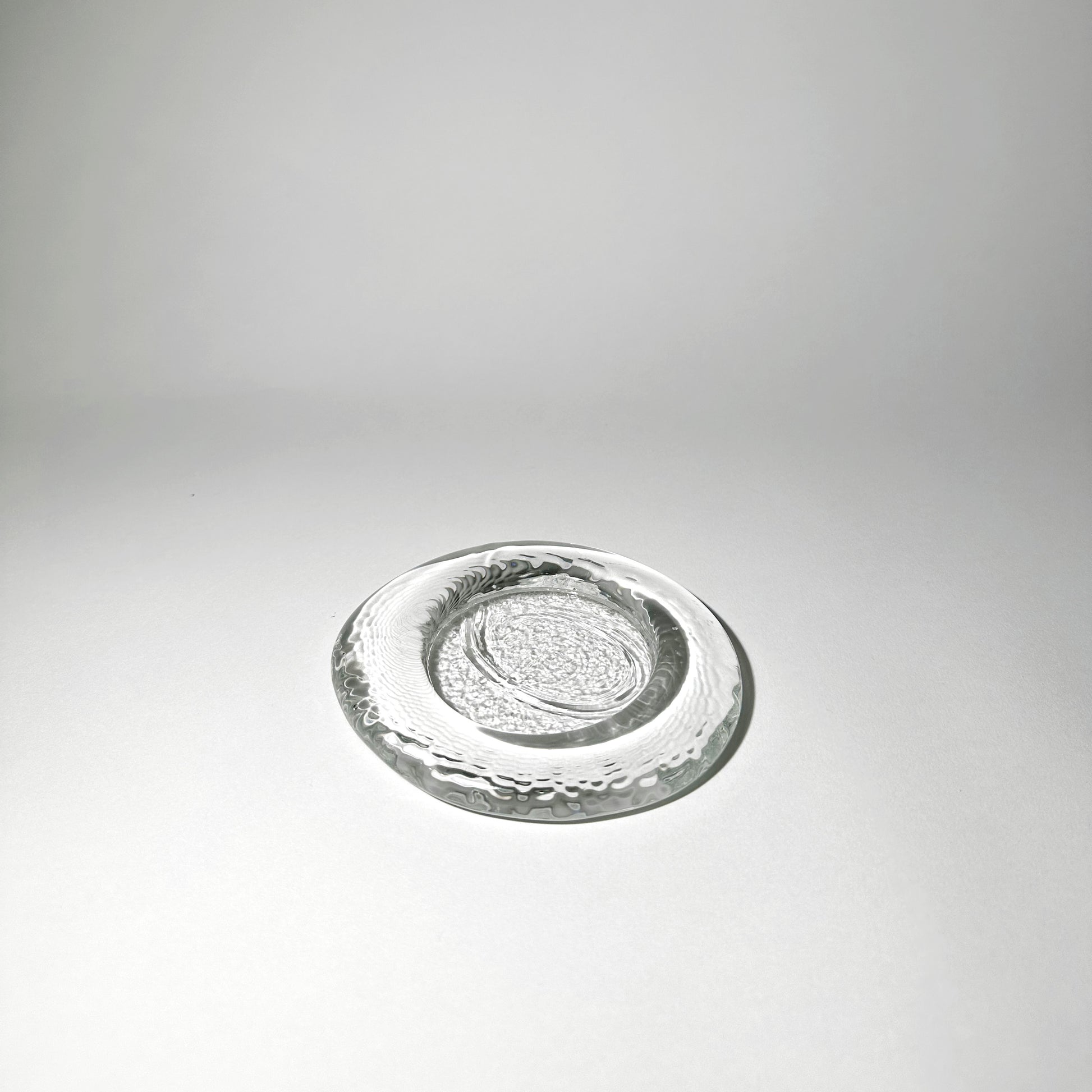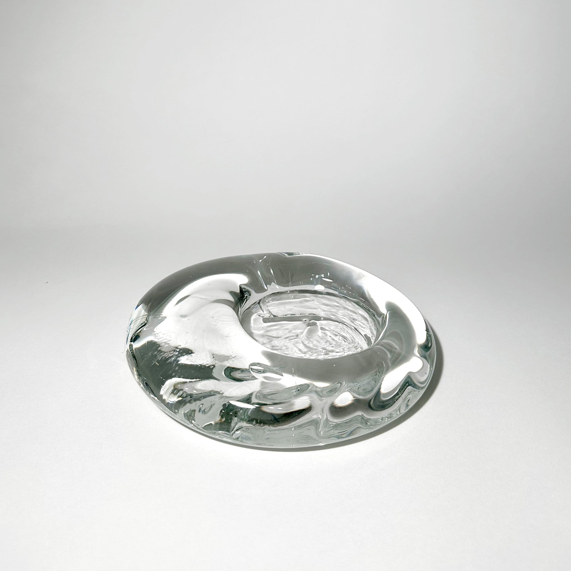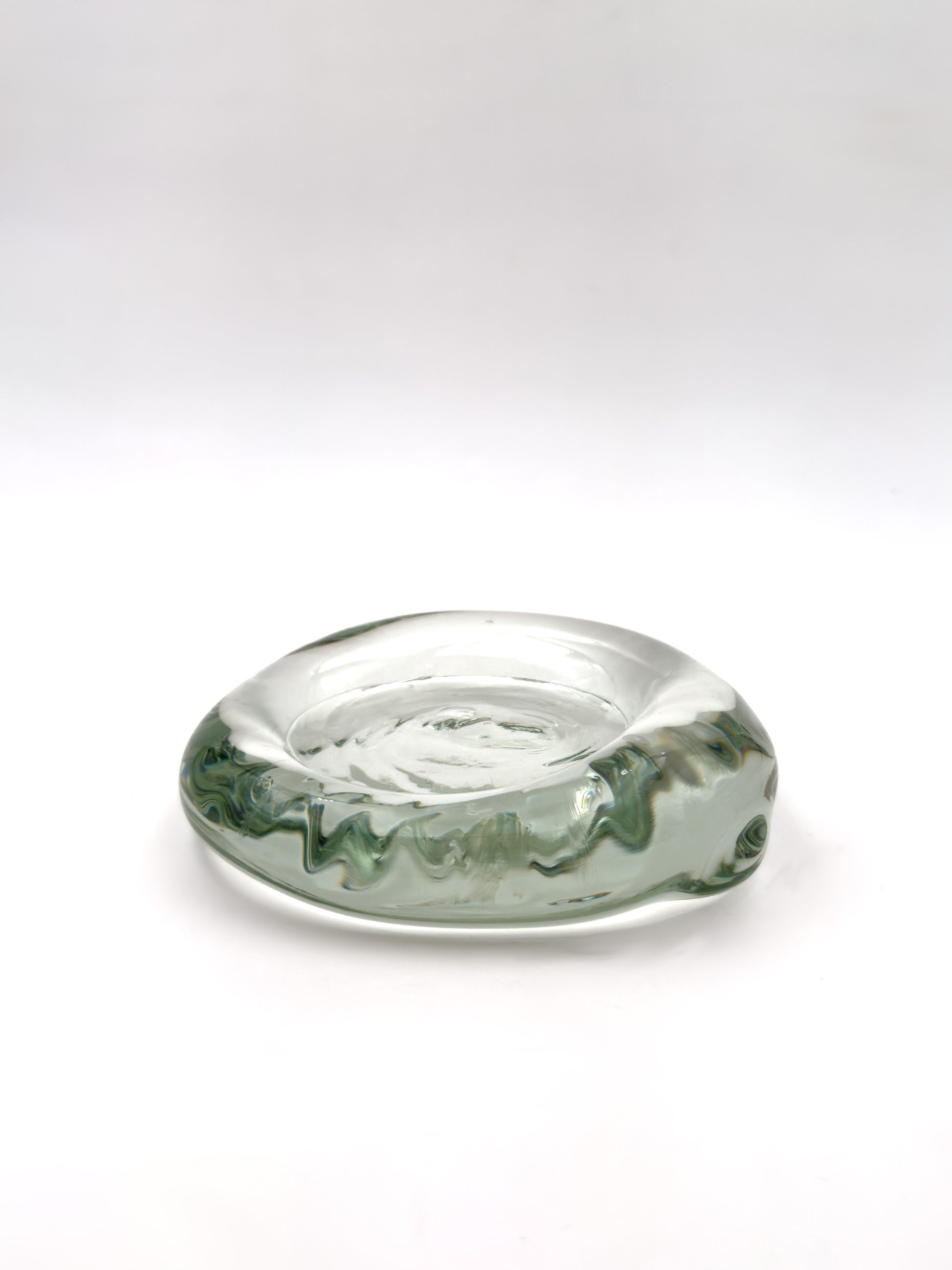 Puddle votives look like small pools of water, or a magnified drop of dew. They possess a circular cavity on their surface to hold candles, incense cones or valuable objects, including jewelry. Each Puddle votive is a sculpture as much as a vessel and no two will look the same.