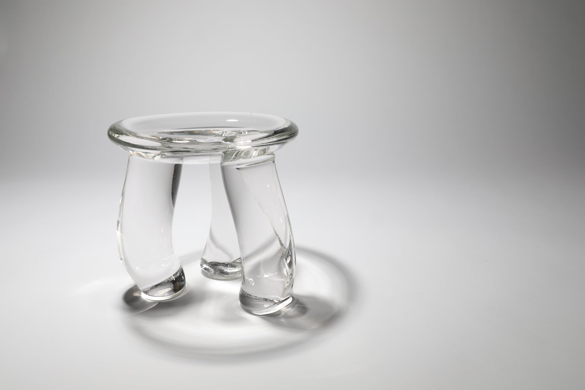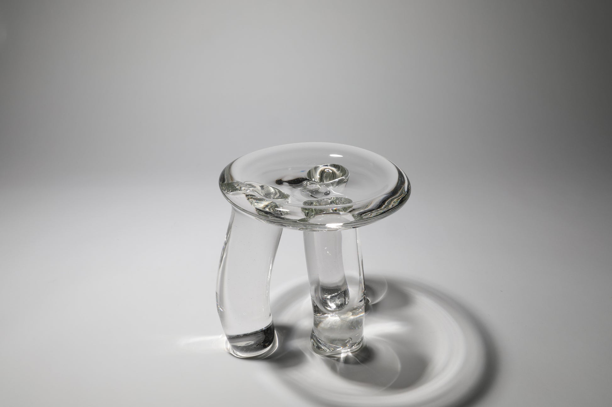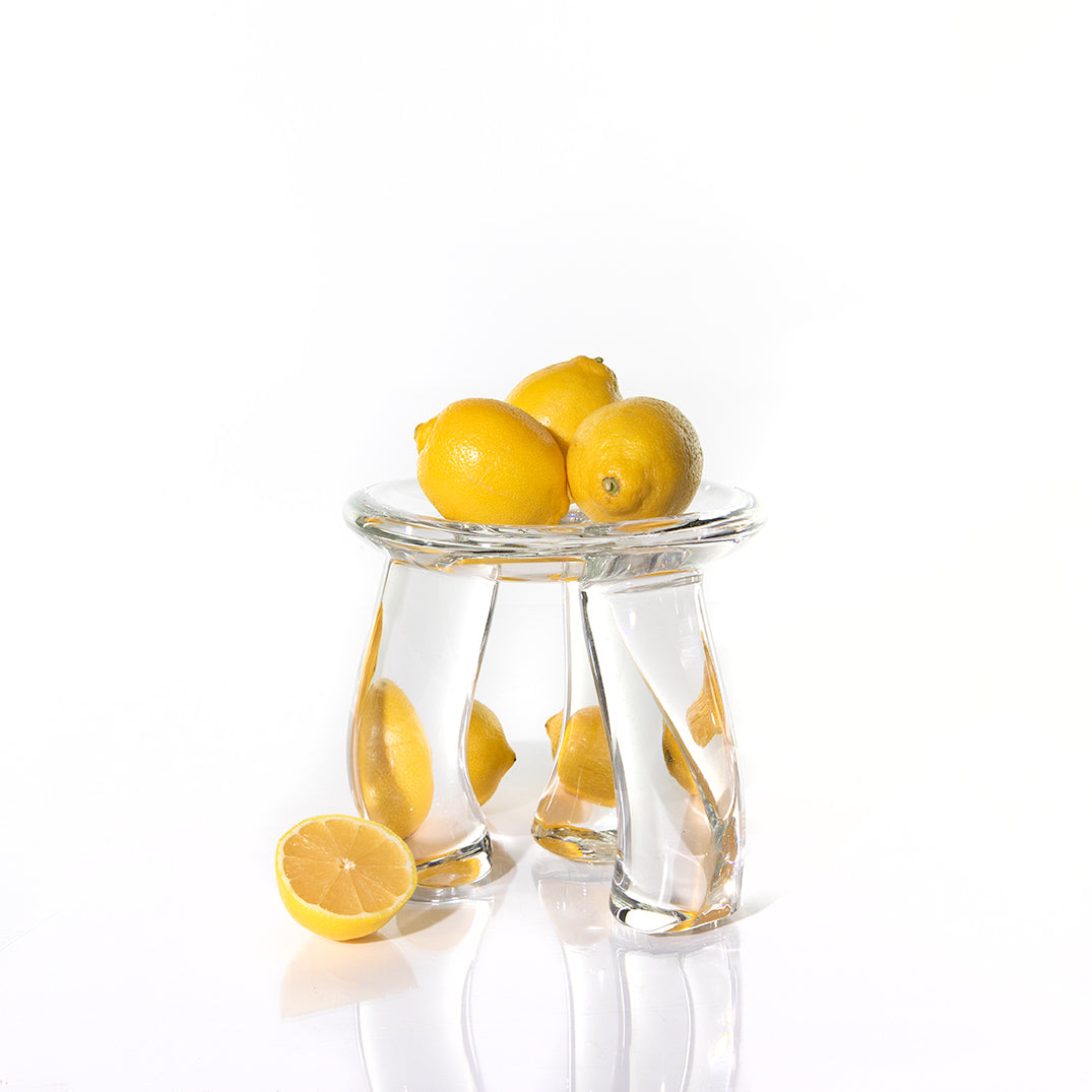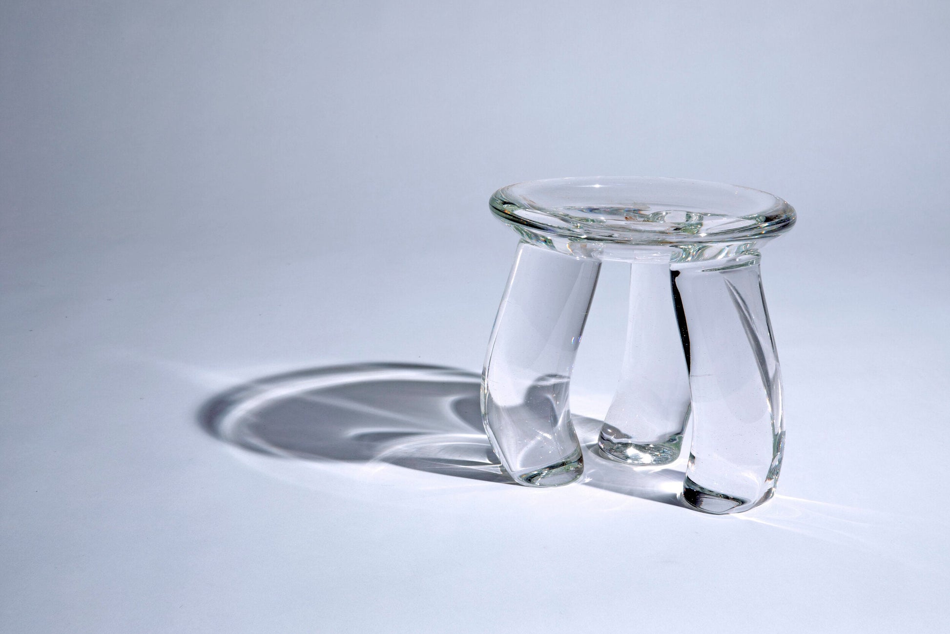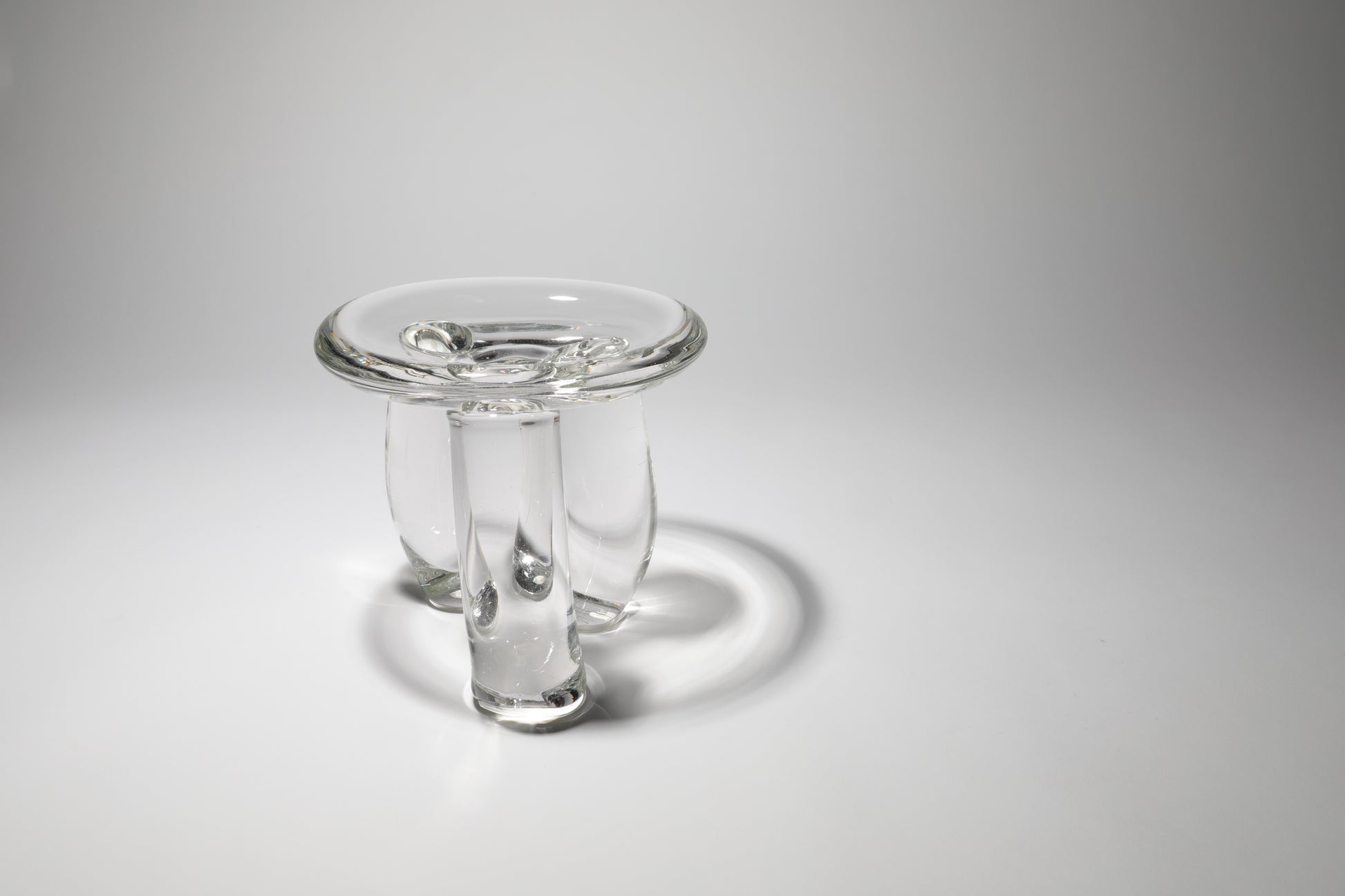 Un recipiente único de tres patas esculpido y ensamblado en caliente a partir de componentes de vidrio sólido. Funciona muy bien como soporte para plantas, o para atrapar todo para sus preciadas pertenencias.